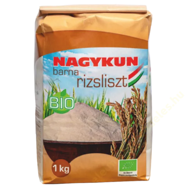 Magyarországon, ökológiai gazdálkodásban termett rizsből készült barna rizsliszt.
